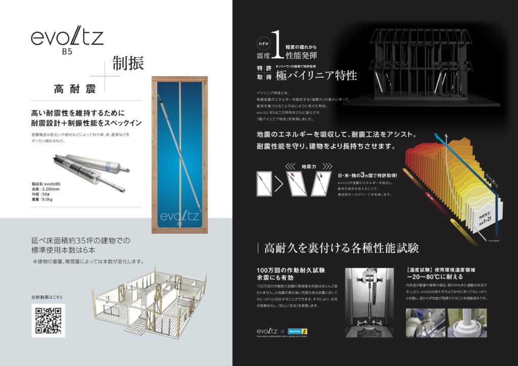 このたび当社では、さらなる安全性向上を目的に、制振装置「evoltz(エヴォルツ)」を2月より全棟標準採用いたします。